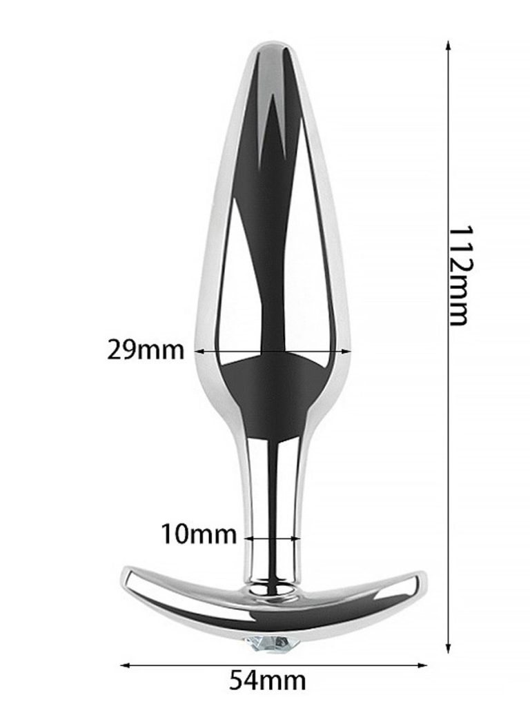 Metalni plug sa dekorativnim kamenom na dnu, veoma gladak tako da u kombinaciji sa lubrikantom sve ide veoma lako i bez napora. Ukupna dužina je 11 cm dok je upotrebni deo 10 cm, prečnik na vrhu je 2,9 cm. Veoma je lak za održavanje, prati običnom vodom i sapunom i koristiti lubrikant na bazi vode.