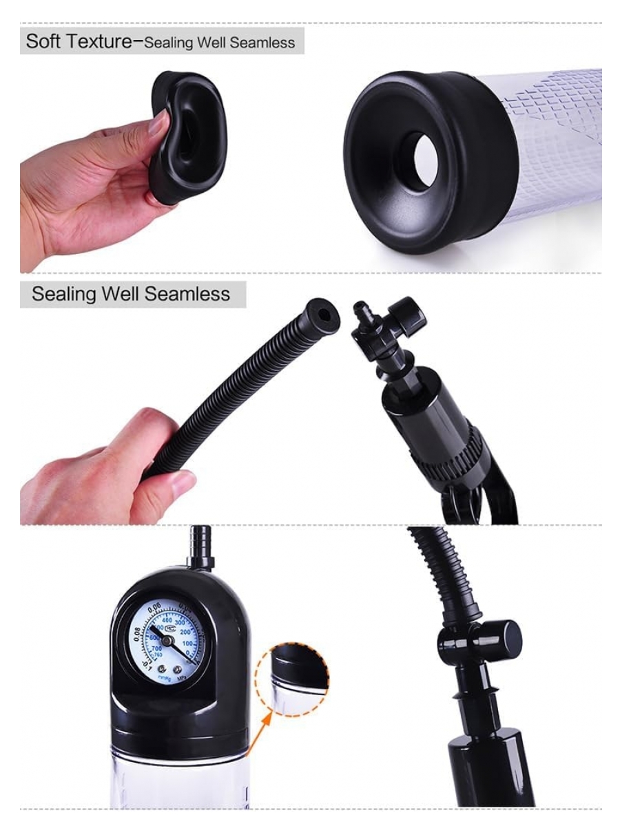 Pumpa nudi udobnost bez premca tokom upotrebe, promovišući rezultate dobijene u kratkom roku. Pumpa maksimizira seksualne performanse i poboljšava erekciju i veličinu penisa. Ugrađeni manometar omogućava bezbedniju upotrebu kroz progresivne vežbe. Sa savršenom ručkom za lako držanje , vakum se lako pravi i upotreba bez problema je zagarantovana. Pored toga, lako dostupan ventil za rasterećenje pritiska obezbeđuje praktičan rad. A sa mekim silikonskim ulazom, vrhunska udobnost je uvek osigurana. Vakuummetar nudi dodatnu sigurnost obezbeđujući bezbedne i progresivne vežbe.