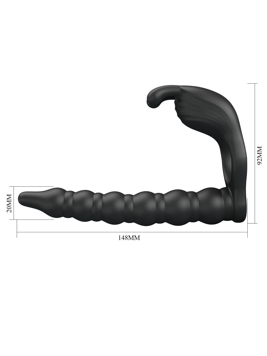 Ovaj inovativni crni vibrator za duplu penetraciju predstavlja savršen izbor za sve koji žele da istraže nove nivoe zadovoljstva. Poseduje savremeni dizajn i pažljivo osmišljene funkcije, koje omogućavaju istovremenu dvostruku stimulaciju, produženje erekcije i odlaganje ejakulacije za muškarca, dok vam proizvod može podariti intenzivne i nezaboravne orgazme.Napravljen od visokokvalitetnog silikona, uređaj pruža neverovatno gladak i prijatan osećaj na dodir.Njegov dizajn uključuje pažljivo oblikovan prsten za penis, koji ograničava protok krvi, pružajući jaču erekciju i dugotrajniju. Analni deo vibratora dodatno unapređuje iskustvo, sa rebrastom strukturom koja pruža dodatnu stimulaciju tokom pokreta, dok zakrivljeni vrh pogađa prave tačke za maksimalan užitak. Sedam različtih funkcija vibracije omogućava istraživanje različitih intenziteta i ritmova, dok memorijska funkcija pamti poslednju odabranu postavku. Puni se preko USB-a. Održavanje antibakterijskim sapunom i mlakom vodom.