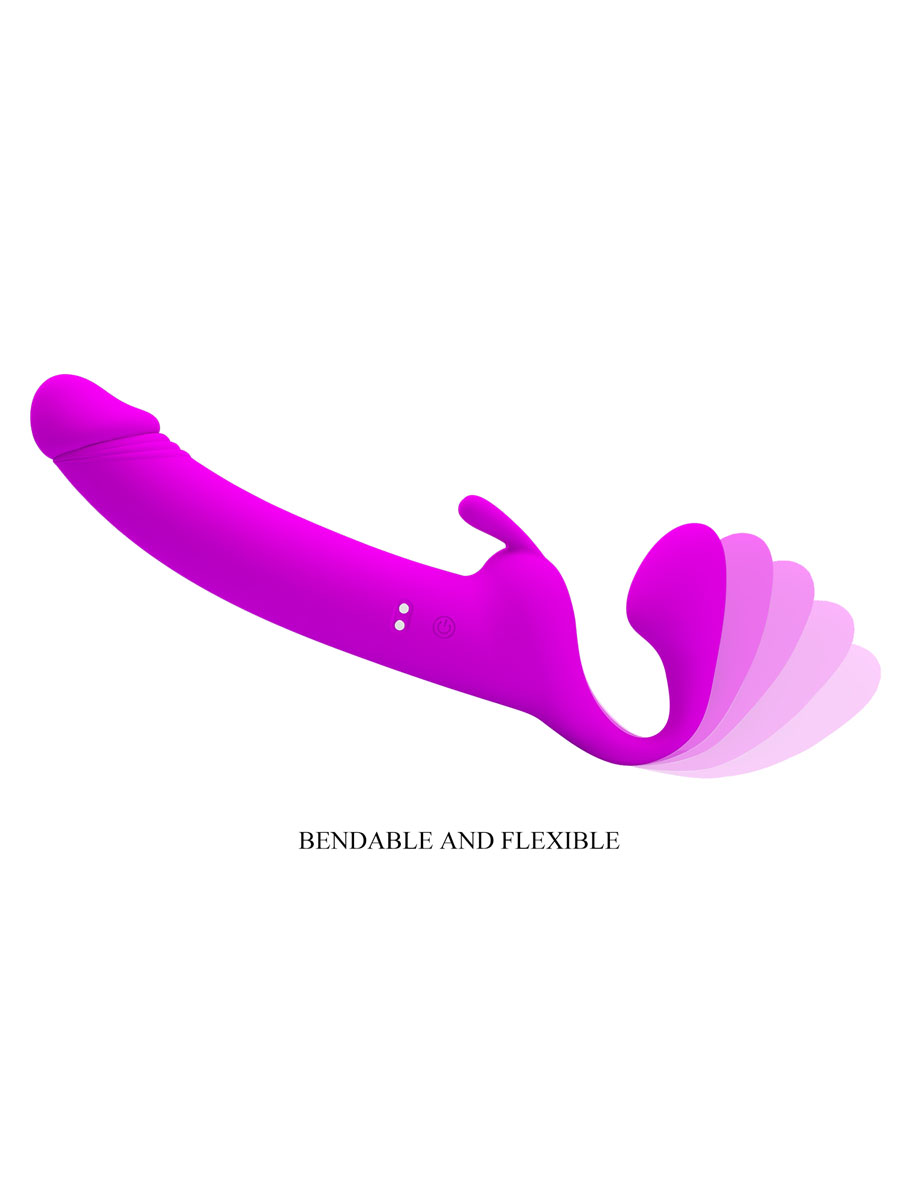 Ovo vrhunski proizvod koji donosi jednu novu dimenziju u seksualnim igrama. Ovaj strap-on bez kaiševa omogućava vam da se oslobodite standardnih ograničenja i uživate u potpunoj slobodi pokreta. Izrađen je od visokokvalitetnog silikona, koji je prijatan na dodir i jednostavan za održavanje. Materijal pruža vrhunsku udobnost i sigurnost pri upotrebi.Njegova ljubičasta boja nosi dozu elegancije, što proizvodu daje jedan nivo plus u estetici. Dizajniran je da istovremeno stimuliše oba partnera. Snažni motori smešteni oba dela vibratora nude čak 10 različitih funkcija vibracija i 10 funkcija tapkanja. Dužina celog proizvoda iznosi 28,3 cm, dok penetrirajući deo meri 16,6 cm, a prečnik u najširem delu je 4 cm. Strap on se puni preko USB kabla koji se dobije u pakovanju. Preporučuje se upotreba  lubrikanta na bazi vode.Održavanje preporučujemo sapunicom i mlakom vodom.