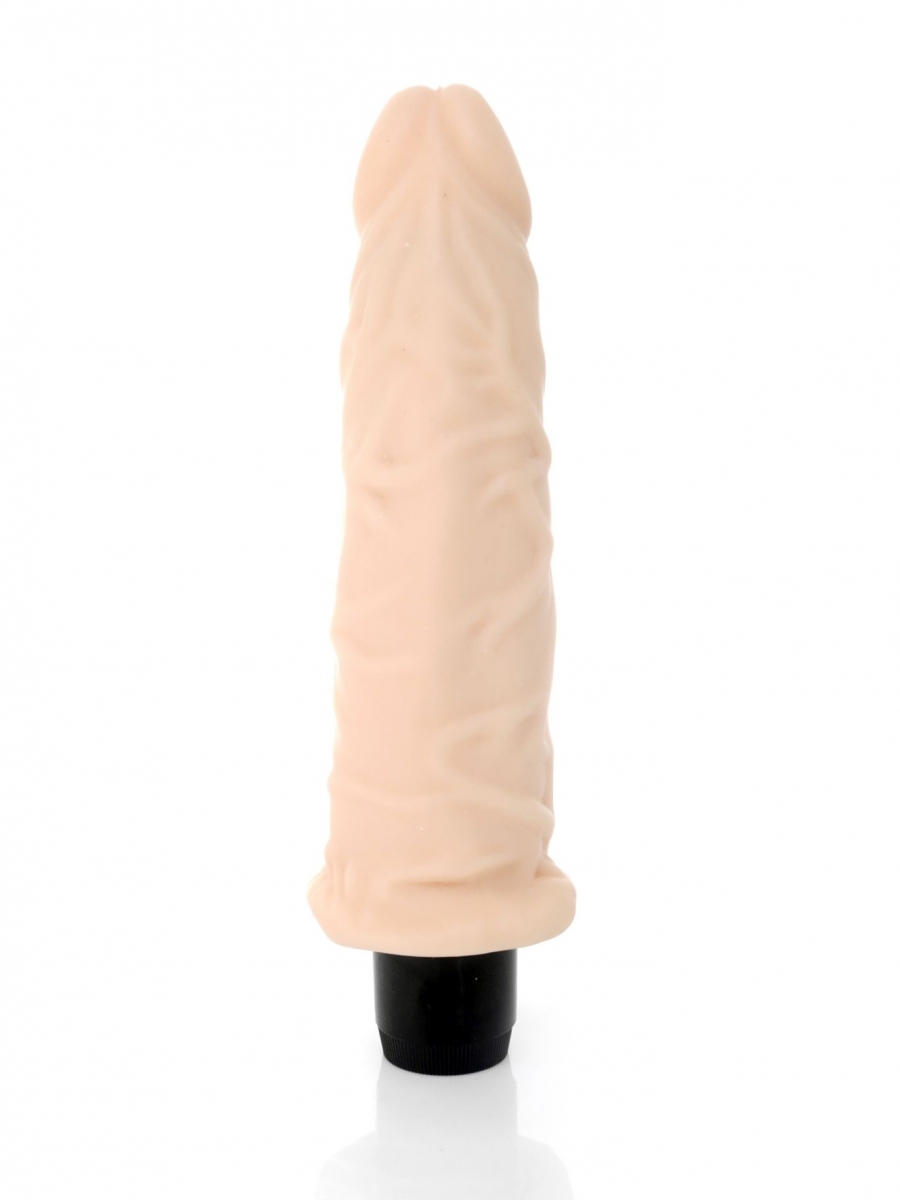 Multibrzinski vibrator idealnih proporcija i realističnog izgleda će Vam pružiti ultimativnu senzaciju.Materijal je TPR i veoma je mekan,prijatan i pre svega savitljiv,tako da možete da se prepustite uživanjima.Poseduje jedan motor i pokreće se preko potenciometra tako da možete da kontrolišete jačinu vibracije u svakom momentu.Baterije koje ovaj model koristi su 2xAA. Dužina : 19 cm Prečnik : 4.5 cm