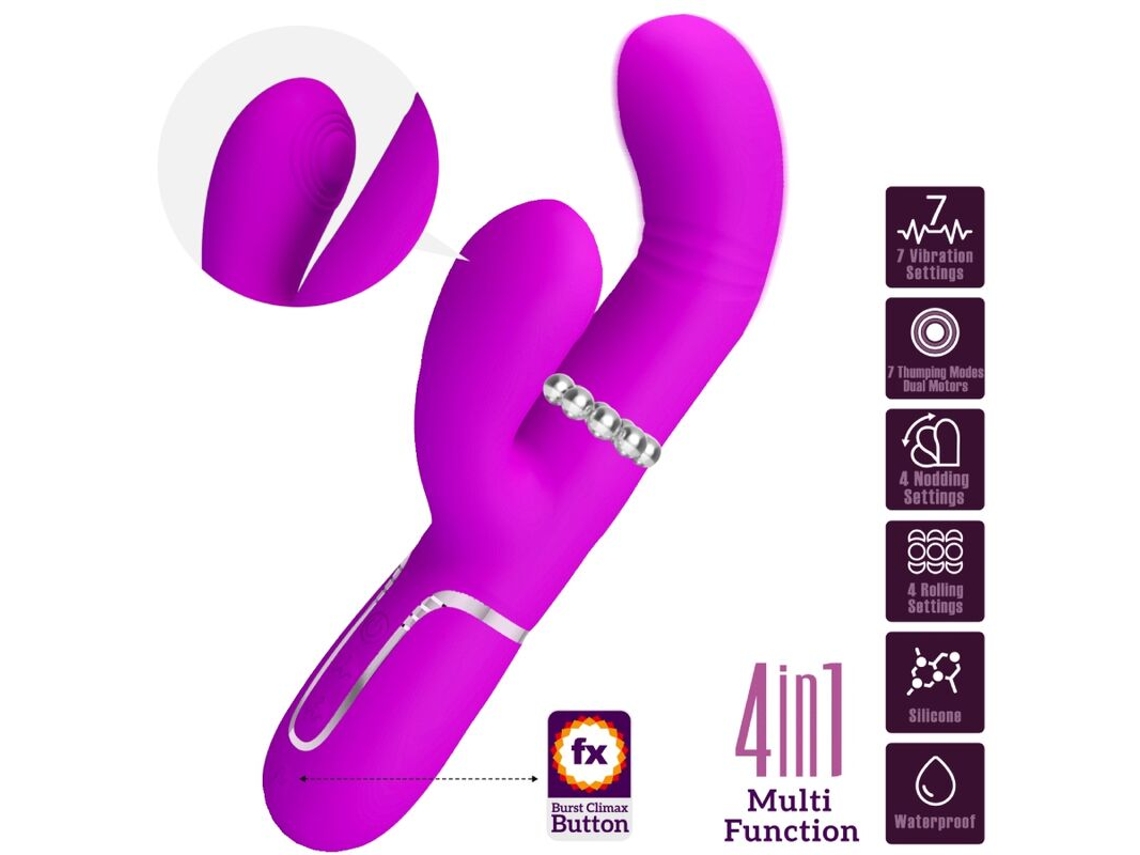 Spremite se za intenzivne senzacije i istražite nove dimenzije zadovoljstva uz ovaj vibrator. Odličan je izbor za one koji žele nezaboravne trenutke i potpuno zadovoljstvo.  Ovaj srdačni zeka kombinuje  7 funkcija vibracije, 7 podešavanja potiska, 4 funkcije ljuljanja i  4 funkcije klimanja glavom. Puni se preko priloženog  magnetnog USB kabla.  Napravljen od ABS silikona, lak je za održavanje. Ne oklevajte, počastite sebe ili voljenu osobu ovim uzbudljivim vibratorom! Savršen izbor za posebne prilike, romantične večeri ili čak samo za osvežavanje svakodnevnog života. Bićete srećni kada otkrijete da zabava nikada ne prestaje!
